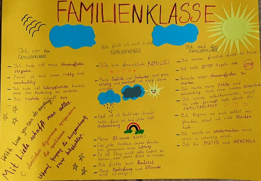 Neben dem Unterricht werden wir mit Familienübungen arbeiten. Die 1. Hälfte des Vormittags besteht aus dem gemeinsamen Unterricht, im Anschluss daran arbeiten wir mit Familienübungen. Der Tag endet mit einer Reflektionsrunde über die Arbeitsphase und den für den Tag formulierten Zielen.